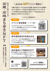 本年9月に、昨年作成したマップを活用し、より多くの市民の方が地域の魅力を身近に感じられるよう2回目となるまち歩きイベントを開催しました(まち歩き、図書館での音楽演奏、石蔵・石垣に関する記録映像上映、講演会)。今回は継続してまち歩きをもっと楽しく、特別な体験にしていただけるようConnective(株)が運営するSnapshotを利用した「みやこのじょう石蔵・石垣まち歩きNFT」イベントを開催いたします。皆様のご参加お待ちしております!